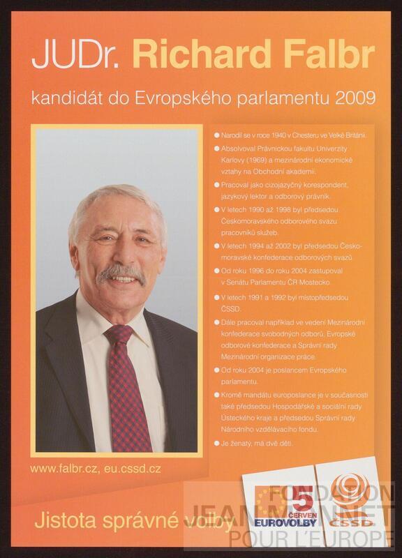 "Affiche du parti Social-Démocratie tchèque (ČSSD) à l'occasion de la campagne européenne de 2009 (source: Wikipédia, consulté en ligne le 19 juin 2025) On retrouve l'indication ""5. června "" (5 juin) sur les affiches C02-0207. C02-0208, C02-0210, C02-0211, C02-0212, C02-0213 et C02-0214, dont certaines datent de 2009, date retenue pour cette affiche."