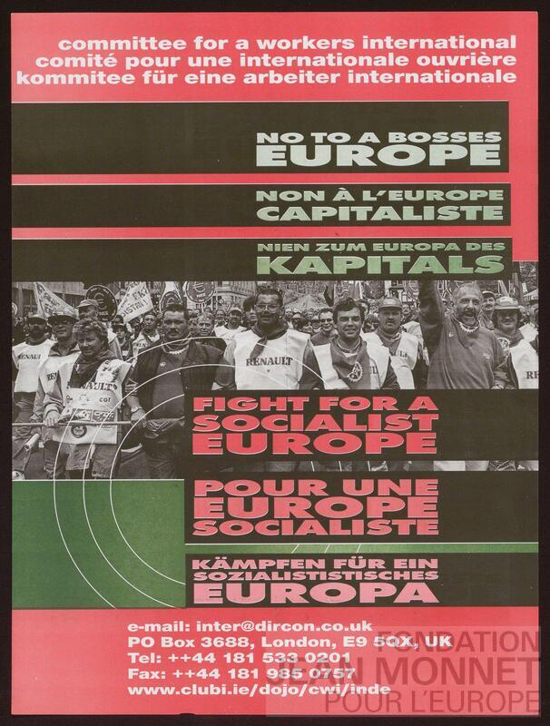Affiche du Comité pour une internationale ouvrière (CWICIO). Affiche en anglais, français et allemand