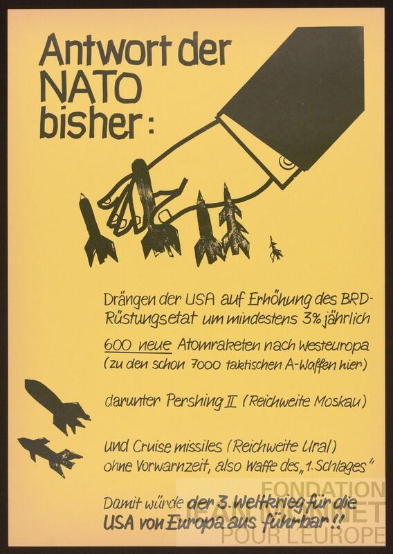 Affiche faisant référence à la crise des euromissiles. Les dates extrêmes correspondent à la crise des euromissiles
