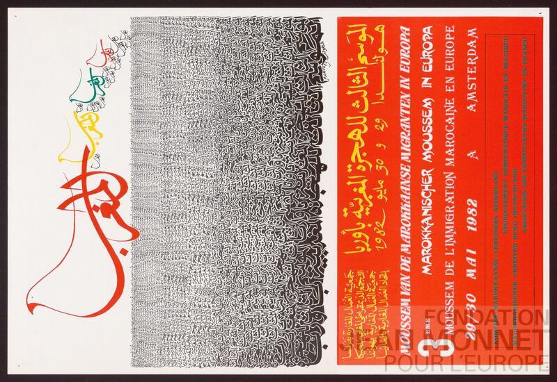 Affiche du regroupement démocratique marocain en Belgique à l'occasion d'une fête culturelle et religieuse appelée moussem ayant lieu les 29 et 30 mai 1982 à Amsterdam