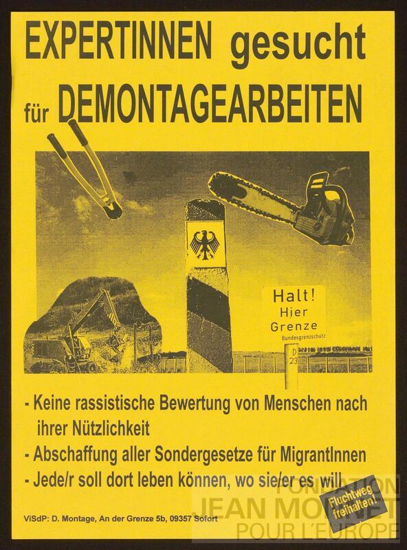 Affiche défendant la cause des immigrés. Responsable au sens du droit de la presse (V.i.S.d.P en allemand): D. Montage