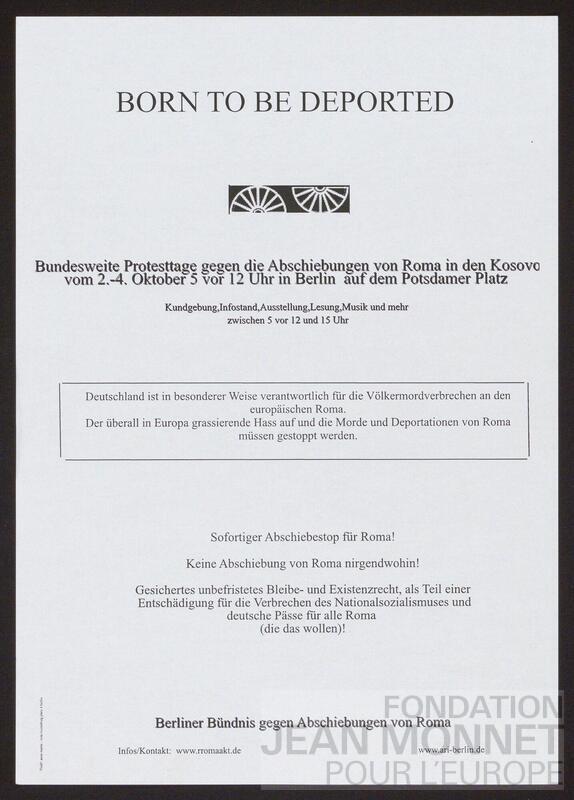 L'affiche présente une annonce de manifestation en soutien des Roms et contre leur renvoi au Kosovo
