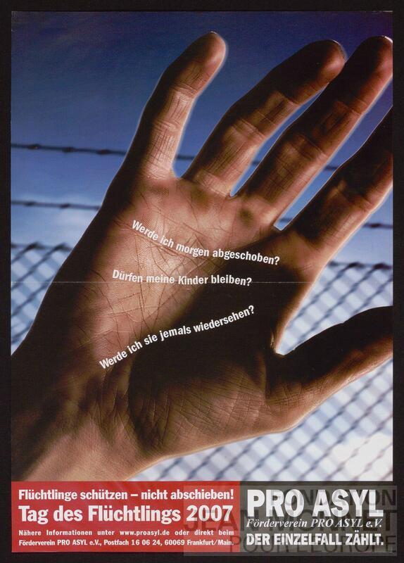 Les affiches C03-0283, C03-0284 et C03-0285 ont la même ligne graphique. Pro Asyl est la plus grande organisation de défense de l'immigration en Allemagne (source: Wikipédia, consulté en ligne le 29 juillet 2025)