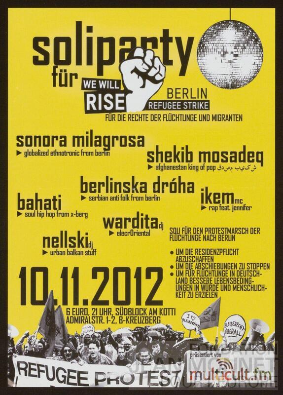Soliparty für : We will raise. Berlin refugee strike