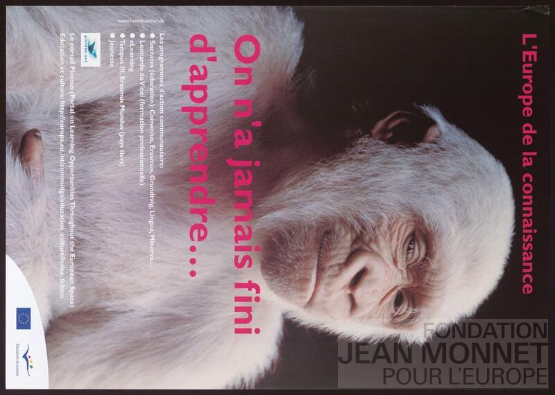 L'affiche présente la photographie d'un singe (probablement un chimpanzé)
