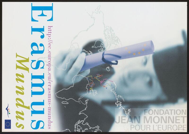 Affiche de promotion du programme Erasmus permettant aux étudiants d'effectuer une partie de leur formation à l'étranger