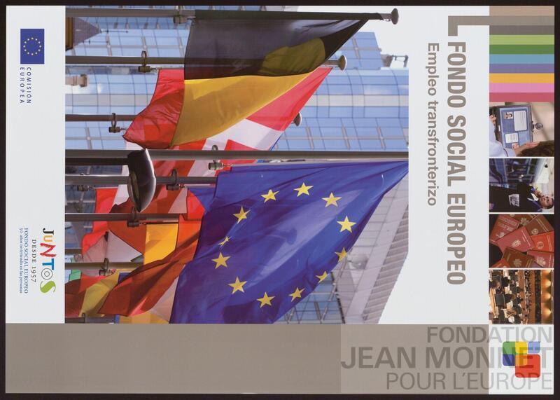Affiche de promotion du Fonds Social Européen. "Le Fonds social européen est créé avec le traité de Rome de 1957 et fut mis en marche le 11 mai 1960. C’est le plus ancien des fonds structurels. Si l’emploi est depuis toujours son objectif premier, il s’est adapté au fil des années pour répondre aux nouveaux enjeux de son époque. Dans la période d’après-guerre, il s’est concentré sur la gestion de la migration des travailleurs en Europe. Il s’est par la suite attaché à combattre le chômage des jeunes et des travailleurs peu qualifiés. Dans la période de financement 2007-2013, il cherche non seulement à soutenir les personnes qui éprouvent des difficultés particulières à trouver un emploi (notamment les femmes, les jeunes, les travailleurs plus âgés et les personnes handicapées), mais aussi à aider les entreprises et les travailleurs à s’adapter au changement. Il s’efforce pour ce faire de soutenir l’innovation sur le lieu de travail, l’apprentissage tout au long de la vie et la mobilité des travailleurs. Dans ce cadre, le FSE soutient par exemple des structures de retour à l'emploi." (Source : Wikipédia, consulté en ligne le 17 septembre 2025)