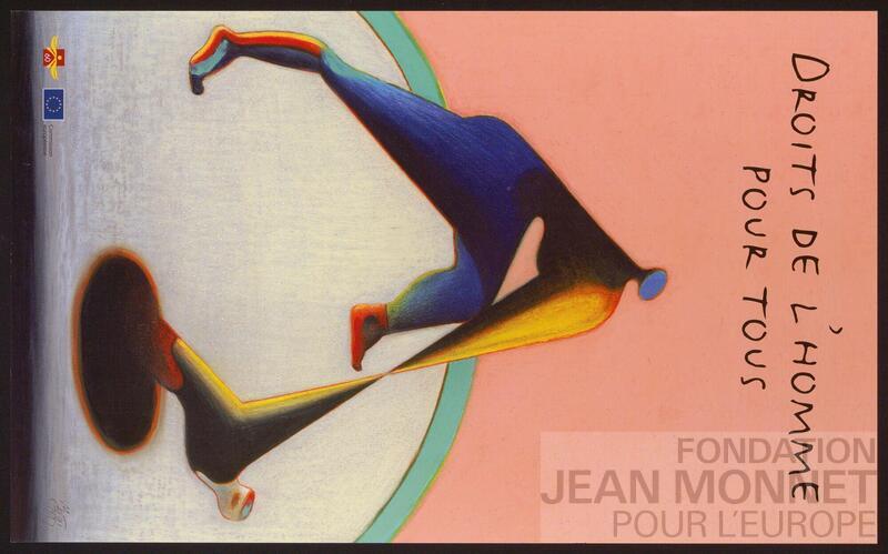 Date de publication et nom de l'artiste trouvés sur le site de la bibliothèque universitaire de Strasbourg (Source : https://bu.unistra.fr/opac/resource/droits-de-lhomme-pour-tous/BUS04340265, consulté en ligne le 30 septembre 2025)