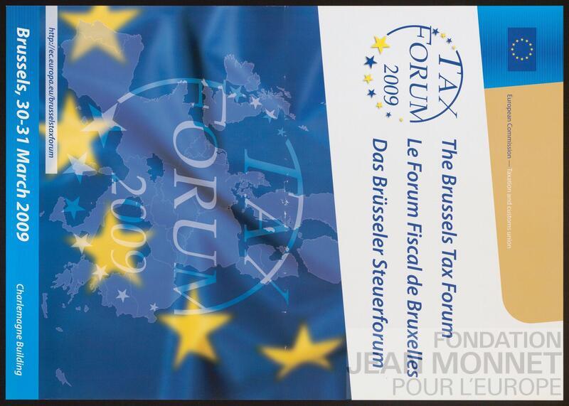 Affiche de promotion pour le forum Fiscal de Bruxelles organisé par la Commission européenne à Bruxelles en mars 2009. "Depuis un quart de siècle, le Forum économique de Bruxelles (BEF) s'est imposé comme l'événement économique phare de la Commission européenne. Le BEF rassemble des dirigeants politiques, des représentants du monde des affaires, des acteurs de la société civile, des universitaires et des acteurs clés du domaine économique afin de mener des discussions prospectives sur des questions essentielles pour l'économie européenne." (traduit avec le programme Deepl) (Source : https://ec.europa.eu/economy_finance/brussels-economic-forum/2025/index.html, consulté en ligne le 08 octobre 2025).
