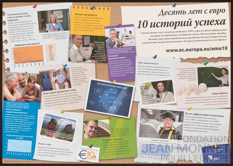 Affiche de la Direction générale des affaires économiques et financières de la Commission européenne pour la promotion de l'Euro. Date de publication déterminée par rapport à l'année d'introduction de l'Euro en 2002 (Source : Wikipédia, consulté en ligne le 09 octobre 2025).