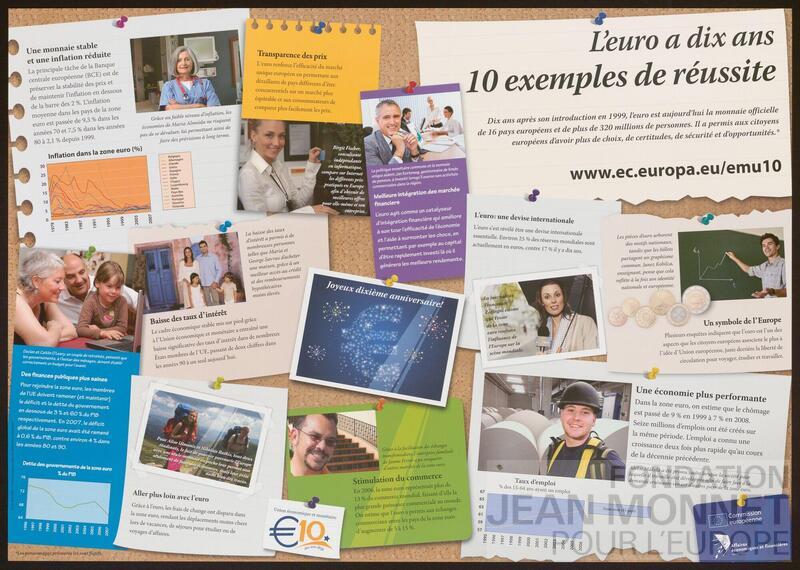 Affiche de la Direction générale des affaires économiques et financières de la Commission européenne pour la promotion de l'Euro. Date de publication déterminée par rapport à l'année d'introduction de l'Euro en 2002 (Source : Wikipédia, consulté en ligne le 09 octobre 2025).