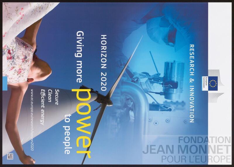Affiche de promotion de la direction générale de la recherche et de l’innovation de la Commission européenne pour le programme de recherche Horizon 2020 qui est "[...] le plus grand programme de recherche et d'innovation jamais mis en place par l'UE, avec près de 80 milliards d'euros de financement disponibles sur 7 ans (2014 à 2020), sans compter les investissements privés que ces fonds vont attirer. Il promet davantage de percées, de découvertes et de premières mondiales en permettant aux idées novatrices de passer du laboratoire au marché." (traduit avec le programme Deepl) (Source : https://wayback.archive-it.org/12090/20220124080448/https://ec.europa.eu/programmes/horizon2020/en/what-horizon-2020, consulté en ligne le 13 octobre 2025). Date de publication trouvée sur le site de l'Office des Publications de l'union européenne, consulté en ligne le 13 octobre 2025.