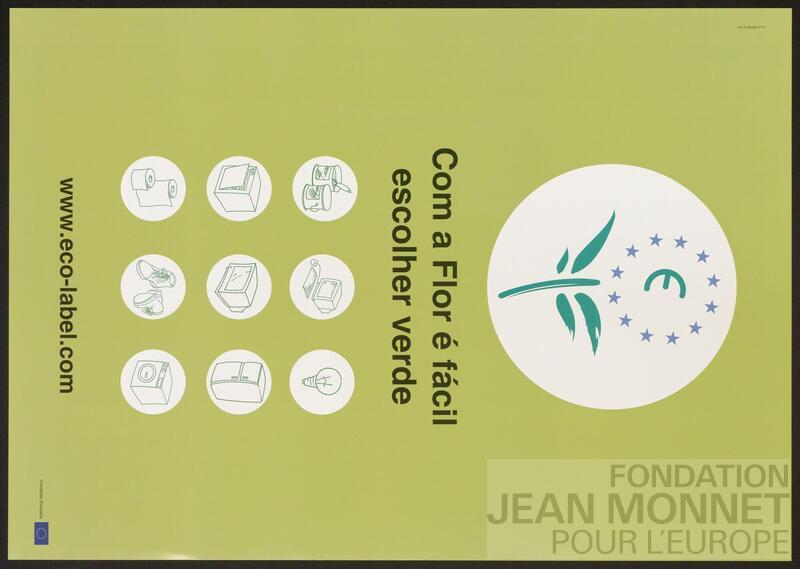 L’affiche représente un logo principal composé d’une plante, des étoiles du drapeau de l’Union européenne et de l’Euro, ainsi que neuf autre symboles