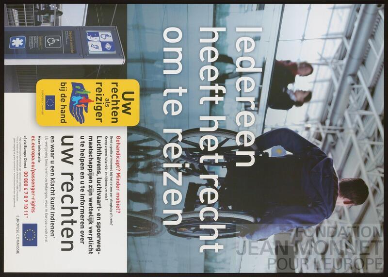 L’affiche représente une personne en fauteuil roulant dans un aéroport