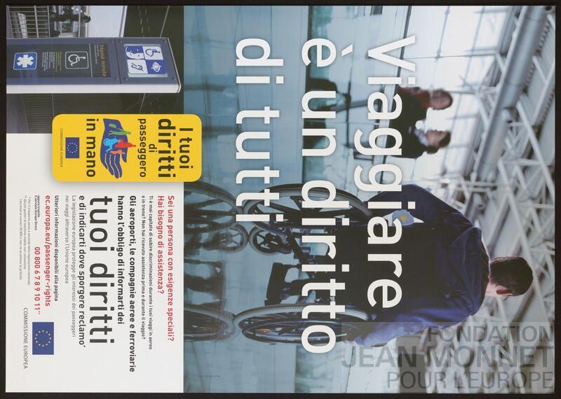 L’affiche représente une personne en fauteuil roulant dans un aéroport