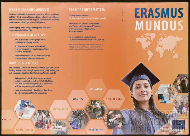 L’affiche représente une étudiante, des photos et une carte de l’Europe